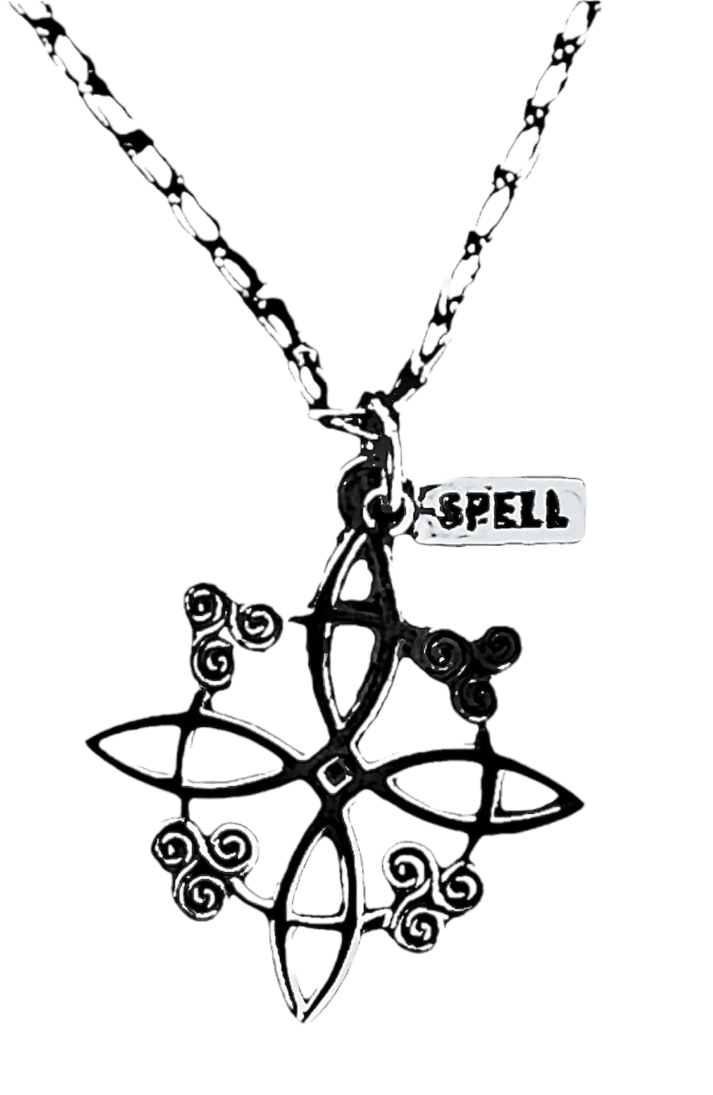Dije Nudo de Las Brujas, conTriskel, en Plata 926 Y baño de Rodio Negro